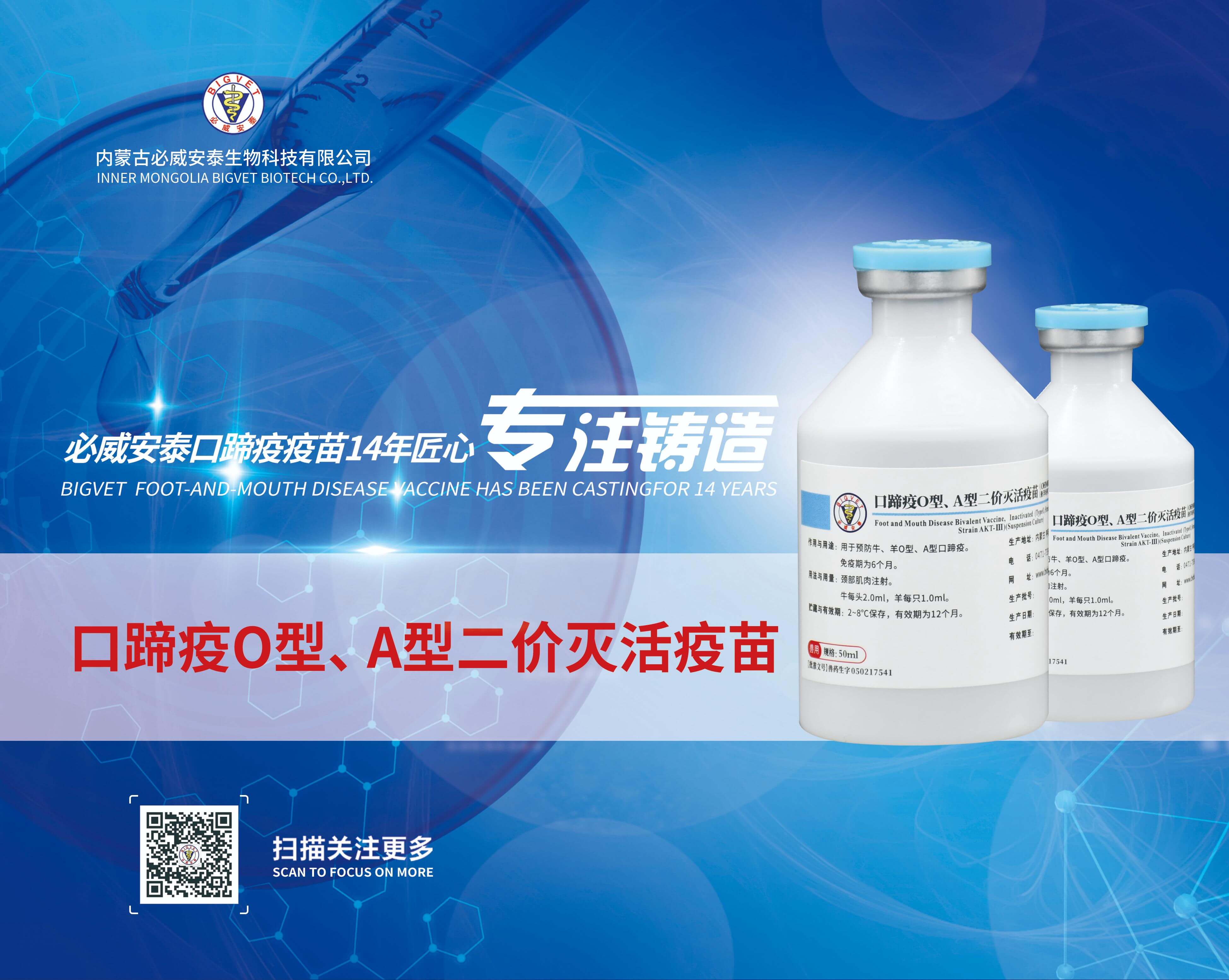 口蹄疫O型、A型二價滅活疫苗(OHM/02株+AKT-III株)(懸浮培養(yǎng)工藝)
